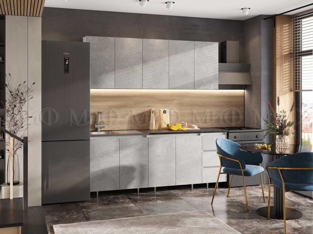 - Кухонный гарнитур Челси 2000 мм Бетон светлый