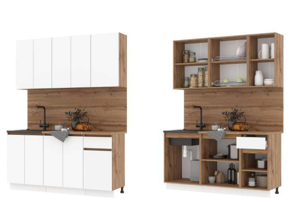 - Кухонный гарнитур Гретта ЛДСП 1600 мм Дуб Вотан-Белый