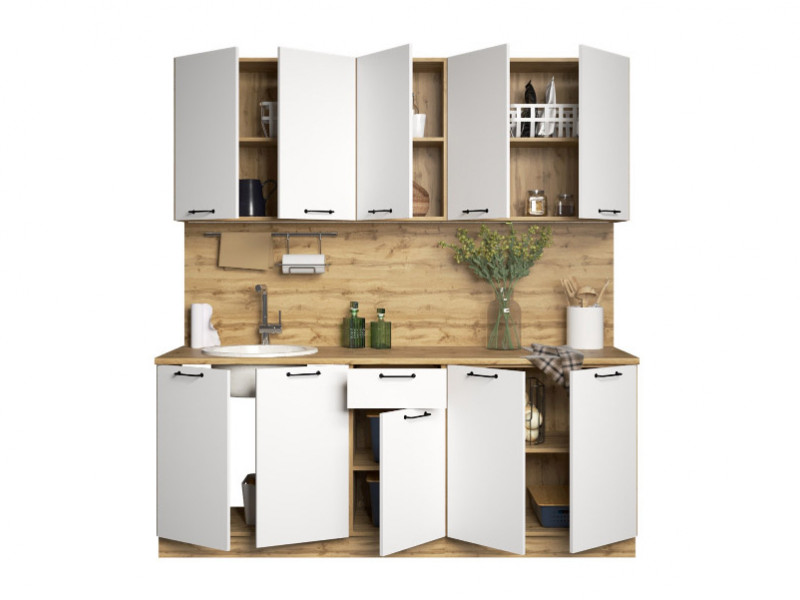 - Кухонный гарнитур Хелмер 2000 мм ЛДСП Вотан/Белый