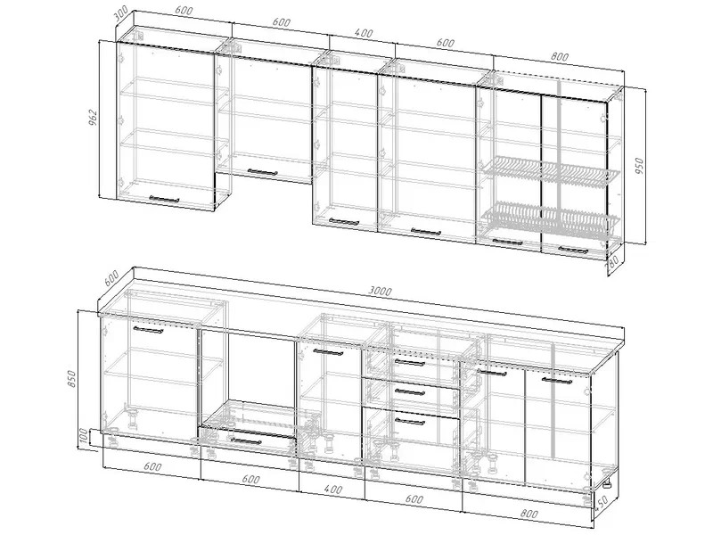 - Кухонный гарнитур Жемчуг 3000 (верх 950 мм)