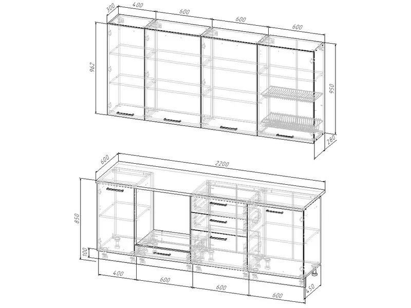 - Кухонный гарнитур Лада 2200 (верх 950 мм)
