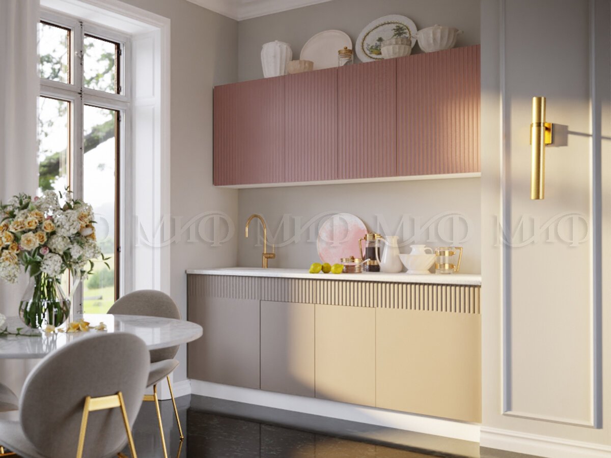 - Кухонный гарнитур Оливия 2000 Шарли Pink/Шарли Мокко