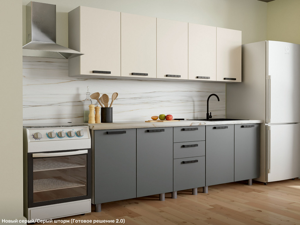 - Кухонный гарнитур Орешник 2000 мм Матовый Новый серый-Серый шторм