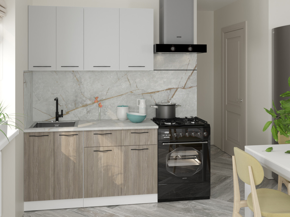 Мойка, смеситель, стеновая панель и посудосушитель в комплект гарнитура не входят.