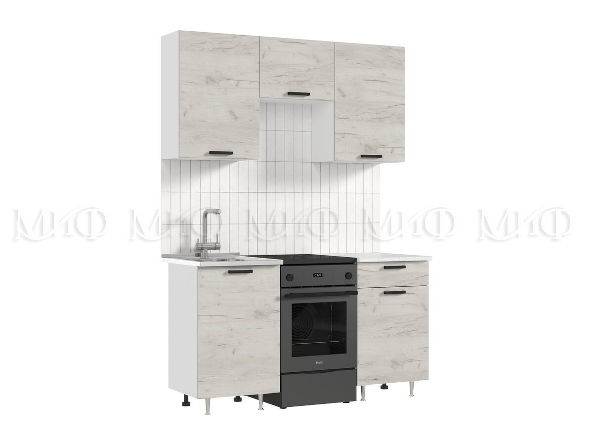 - Кухонный гарнитур Рио New 1500 дуб крафт Белый
