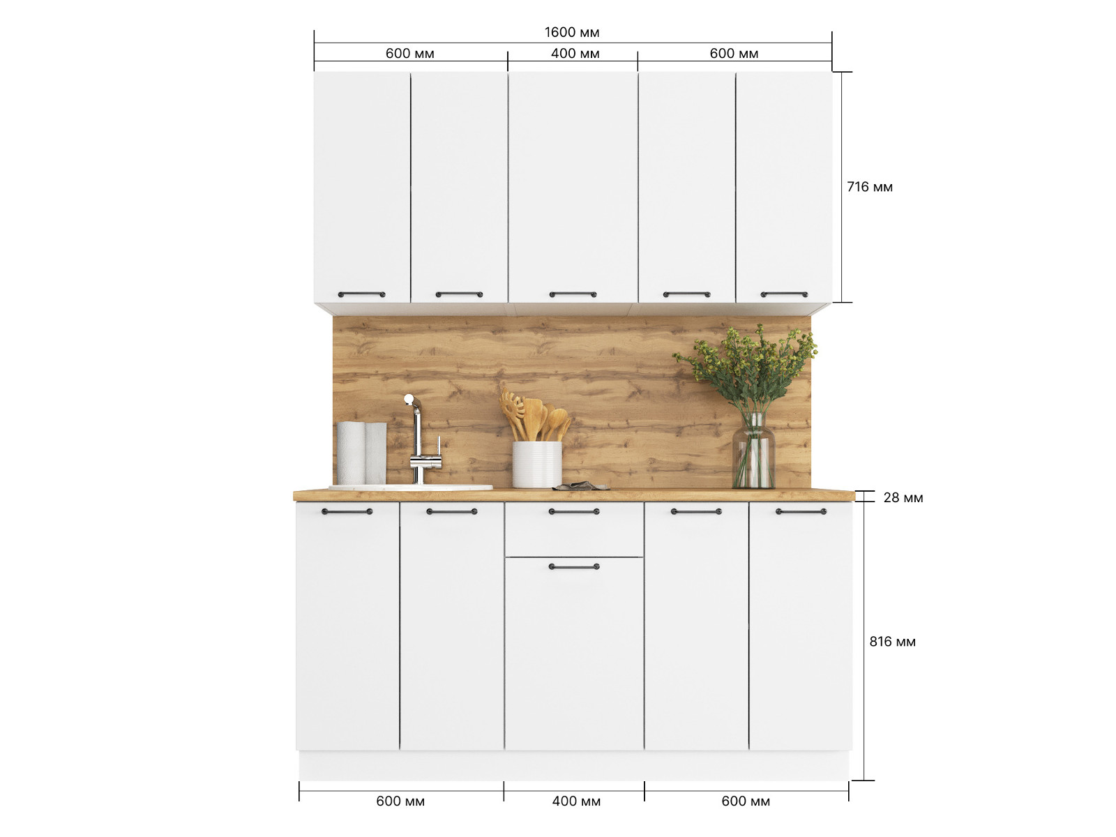 - Кухонный гарнитур Валерия 1600 мм МДФ Вотан/Белый