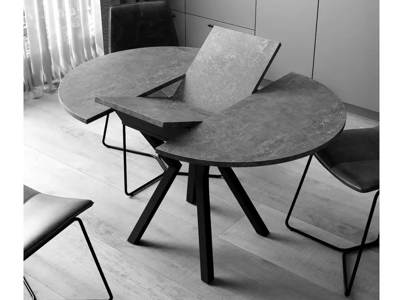 - Стол Лофт-круг раздвижной Пластик 0440-черная опора изогнутая ромб