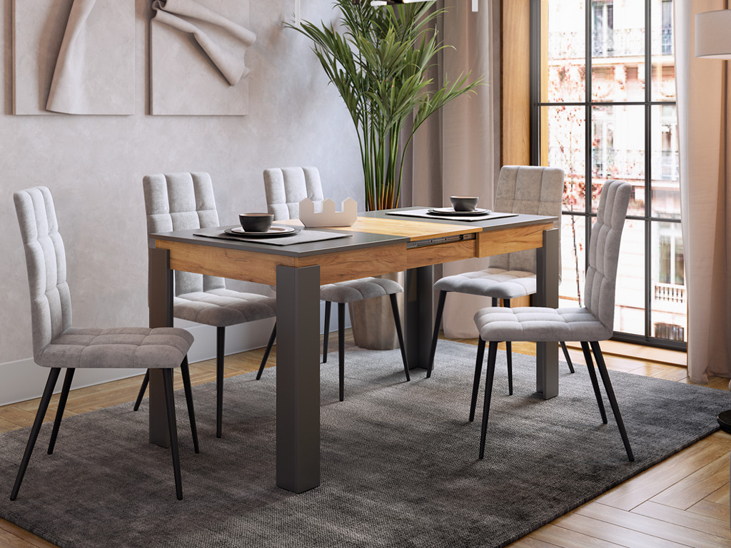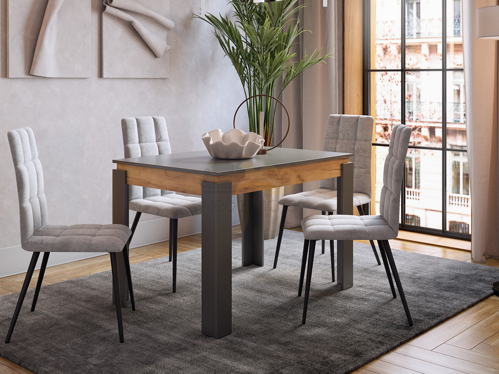 - Стол обеденный раздвижной Гермес 2 графит/дуб крафт золотой