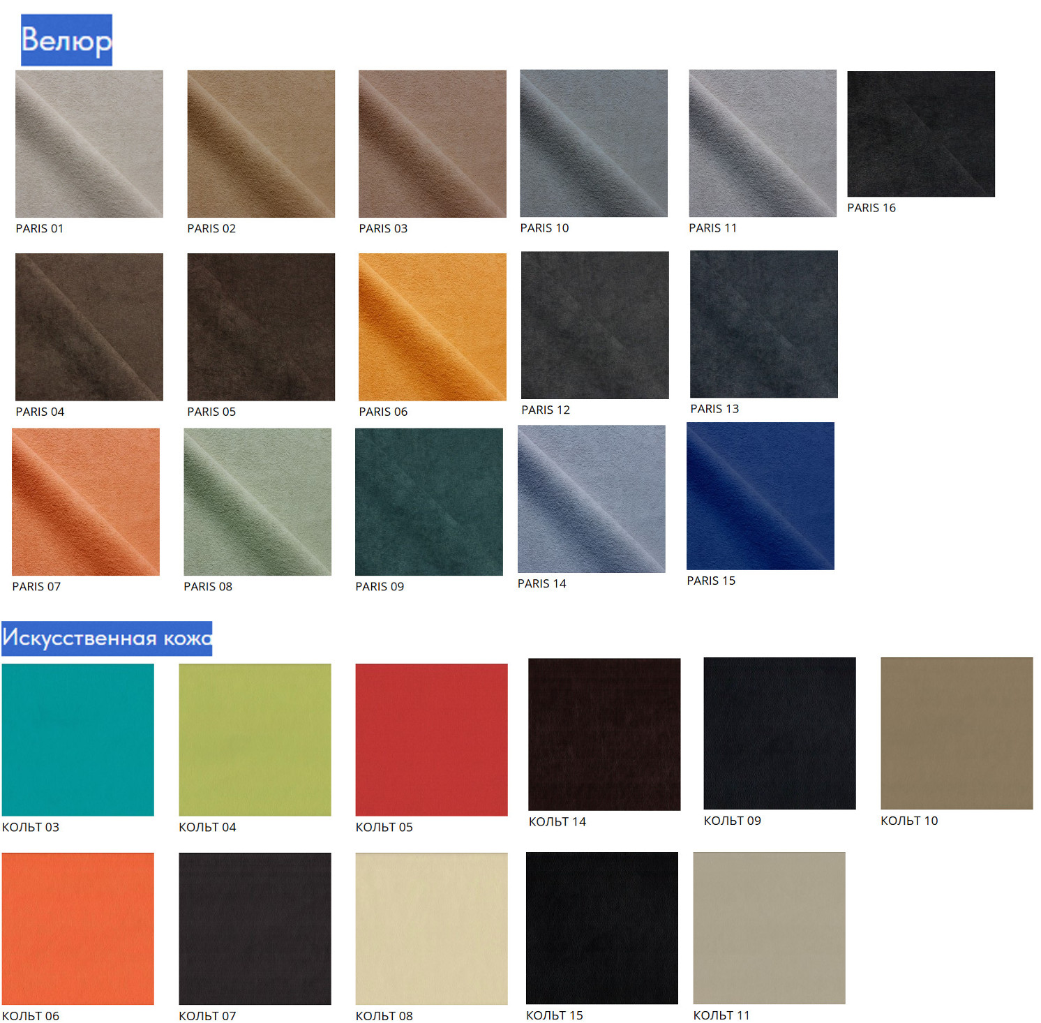 - Кольт, Luma, Paris, Merlin, Desert, Plush, Jercy, Dubai