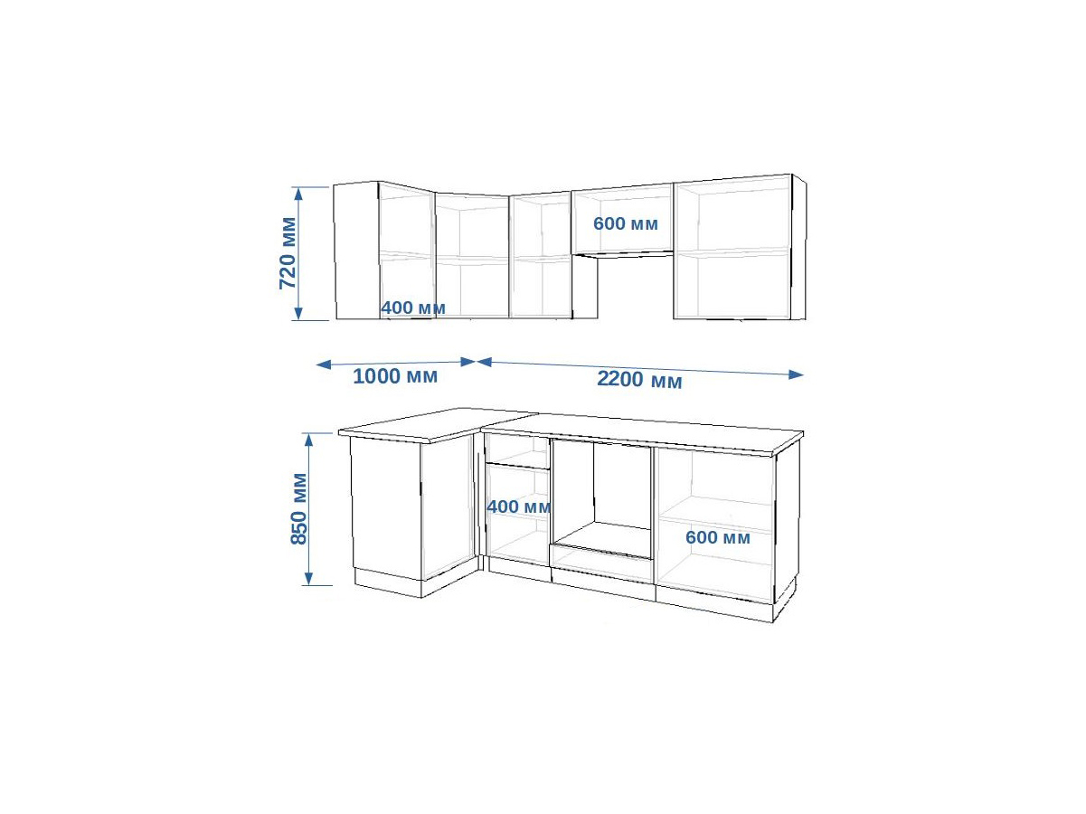 Кухонная мойка, стеновая панель, посудосушитель, планки для столешницы в комплект не входят.