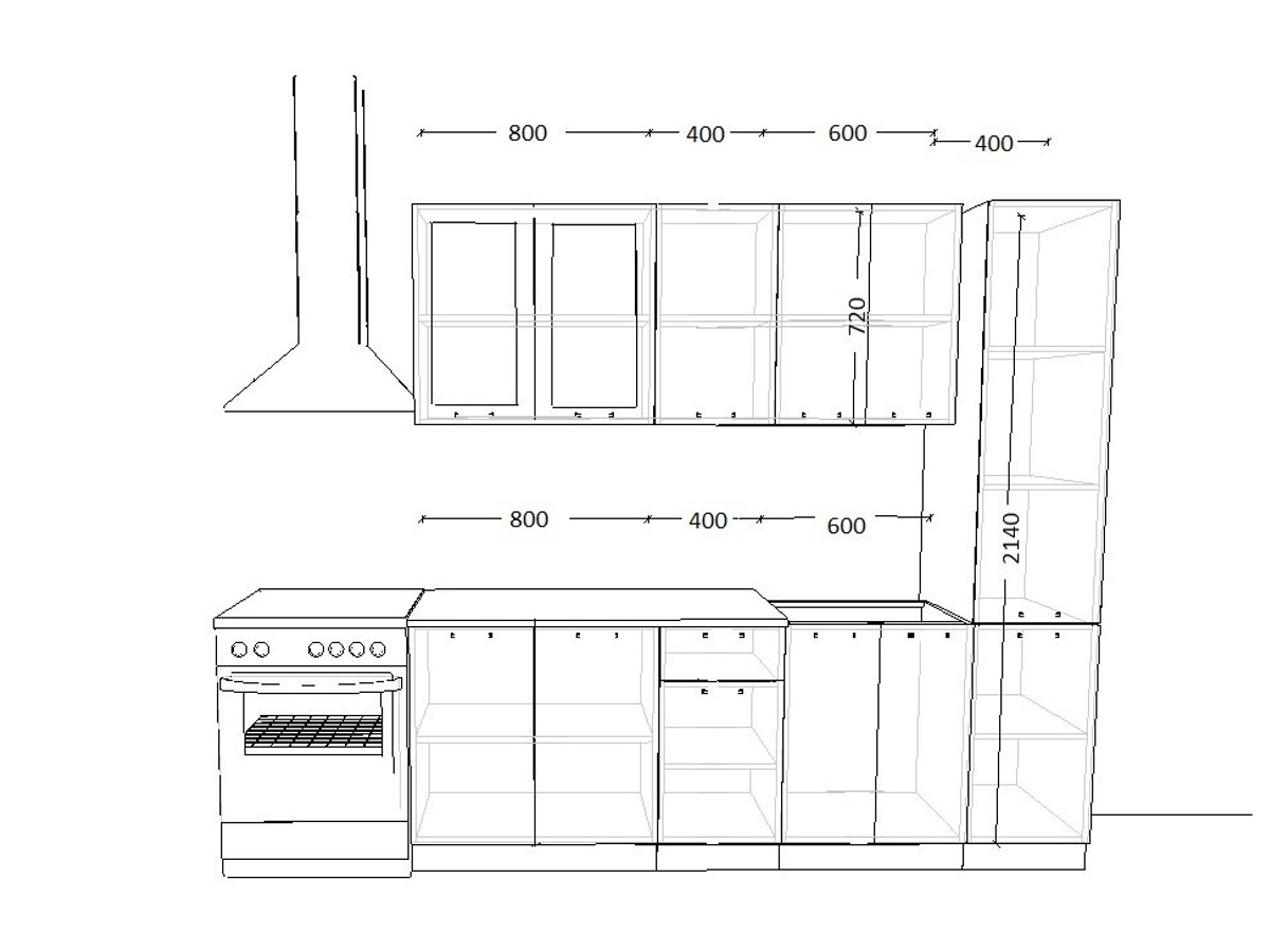 Кухонная мойка, стеновая панель, посудосушитель, планки для столешницы в комплект не входят.