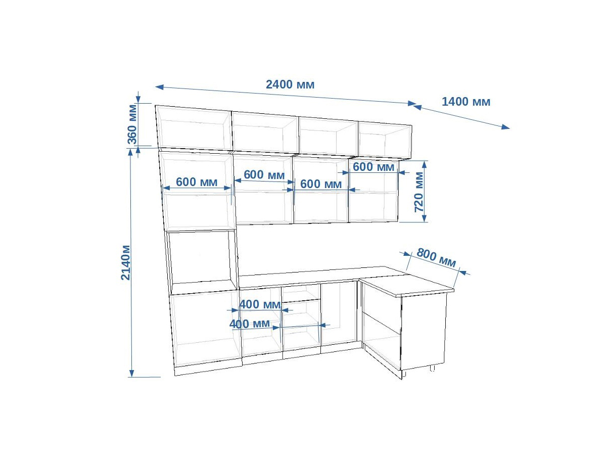 Кухонная мойка, стеновая панель, посудосушитель, планки для столешницы в комплект не входят.