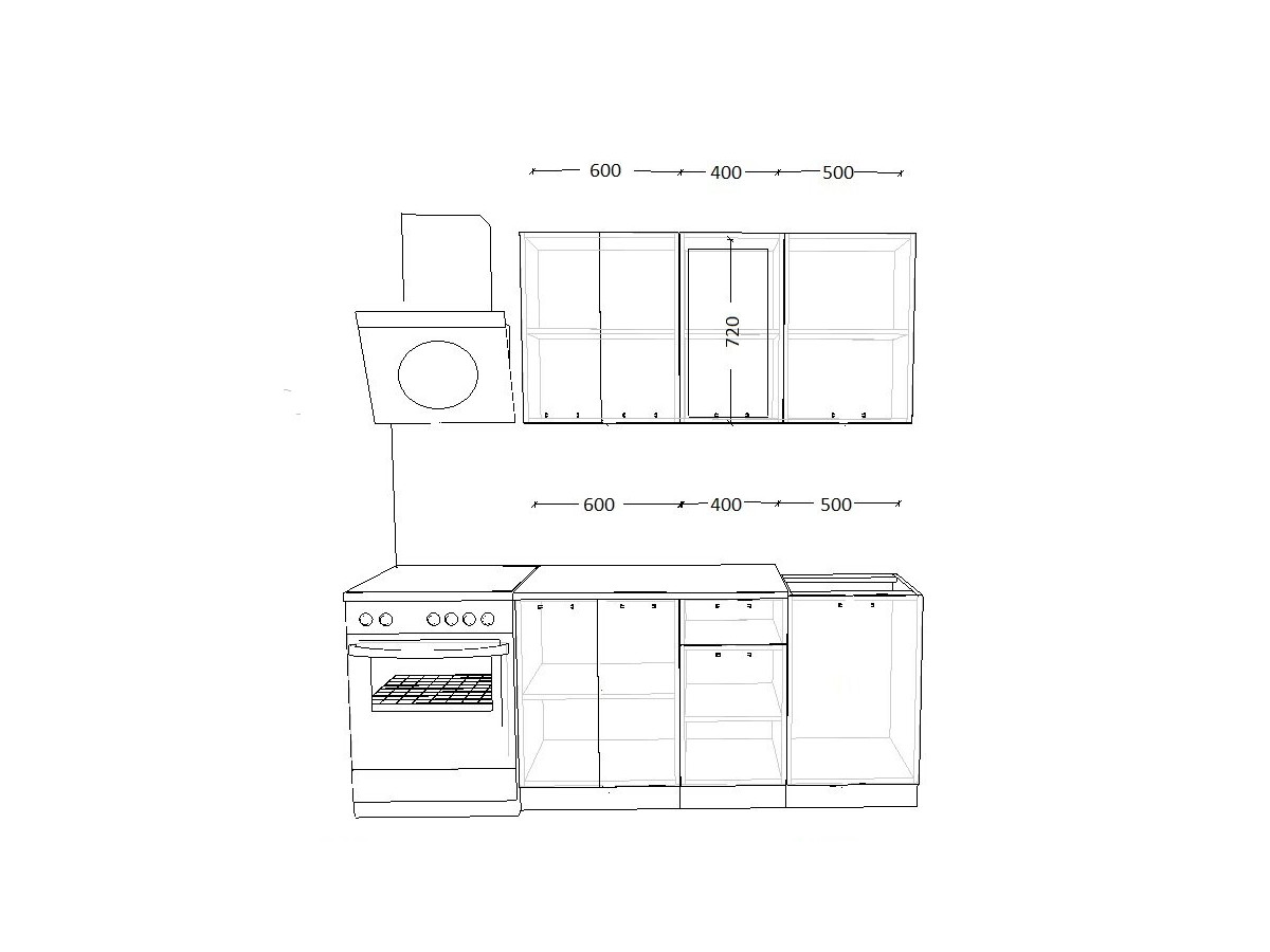 - высота верхних шкафов 720 мм