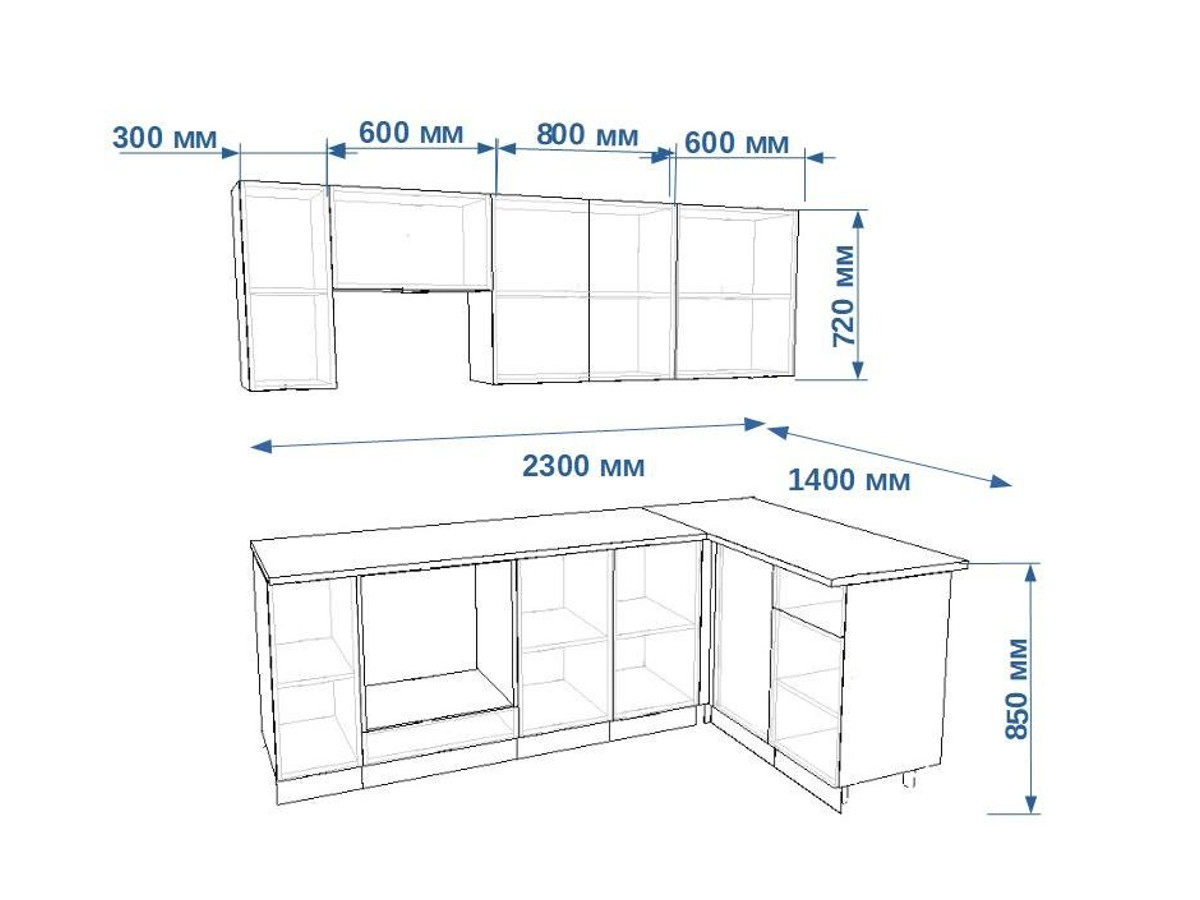 - Кухонный гарнитур арт 2 Тальк Дуб сонома 2300х1400 мм