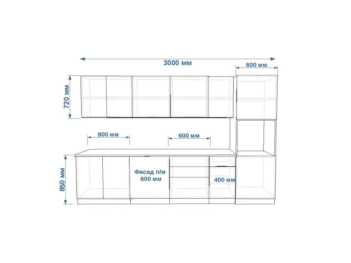 - высота верхних шкафов 720 мм