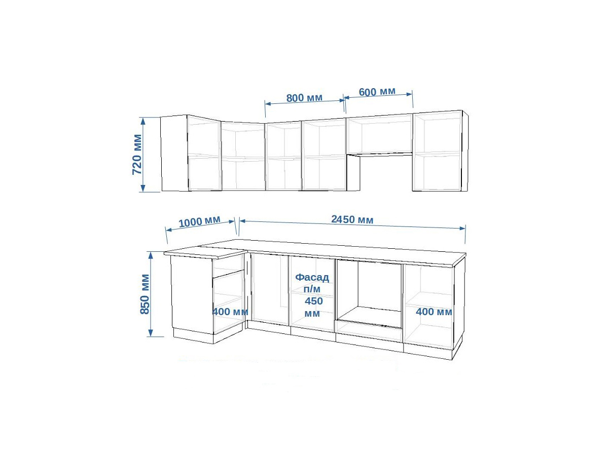 - высота верхних шкафов 720 мм