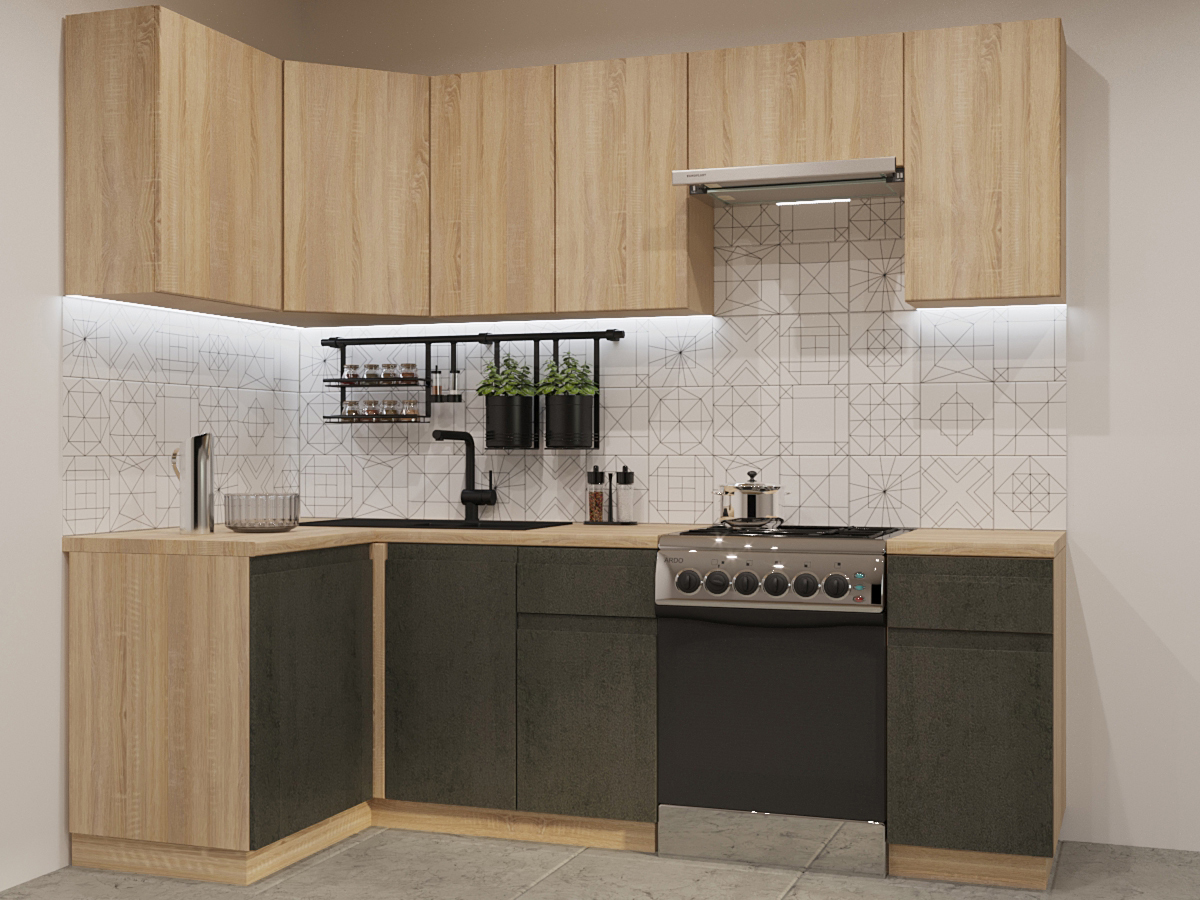 - Кухонный гарнитур арт 32 Лайн Дуб сонома Бетон темный 1200х2400 мм