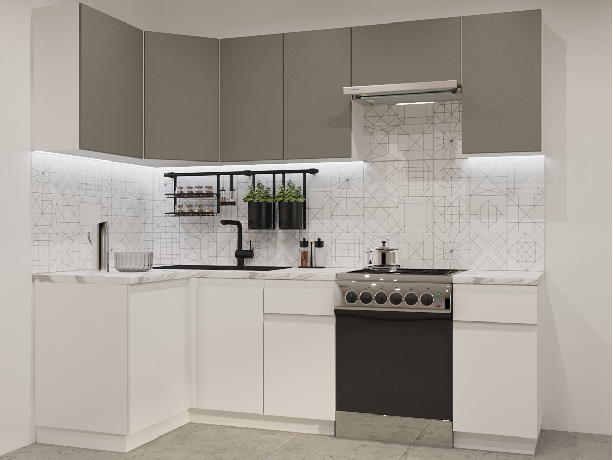 Кухонный гарнитур арт 34 Лайн Обсидиан Тальк 1200х2400 мм