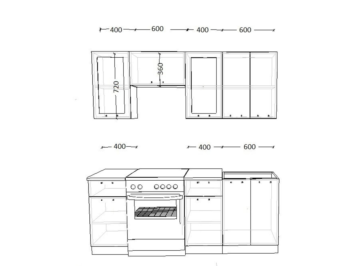 - высота верхних шкафов 720 мм
