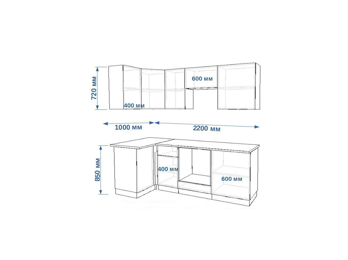 - Кухонный гарнитур арт 8 Лайн Обсидиан 1000х2200 мм