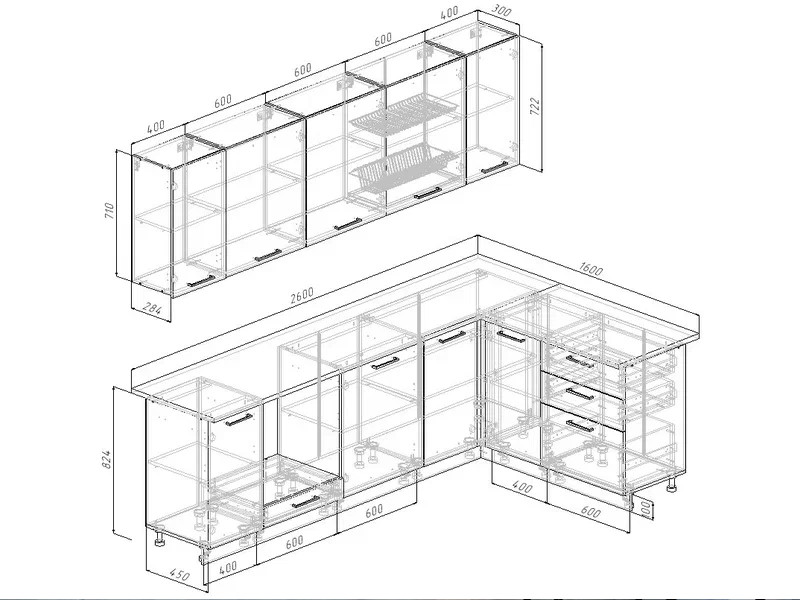Ширина кухни: 2600х1600 мм