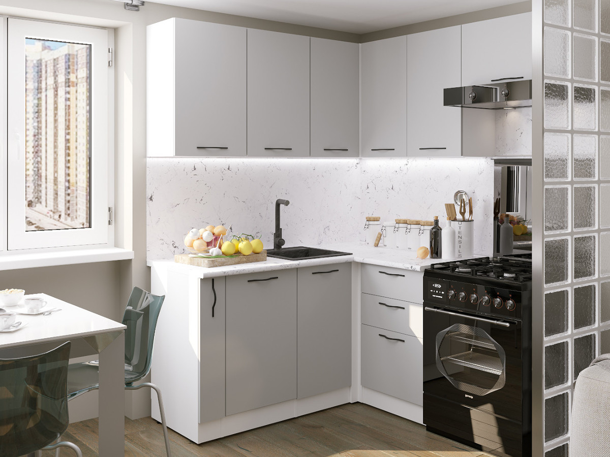 - Кухонный гарнитур Шелли мега прайм 1600х1700 мм