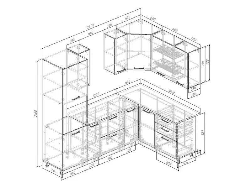 Ширина кухни: 2400х1600 мм