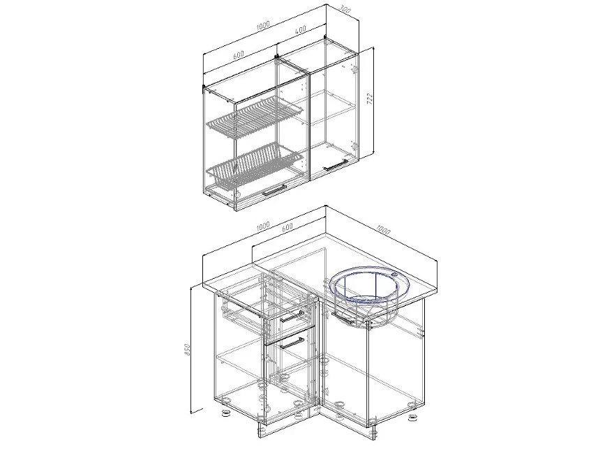 Ширина кухни: 1000х1000 мм