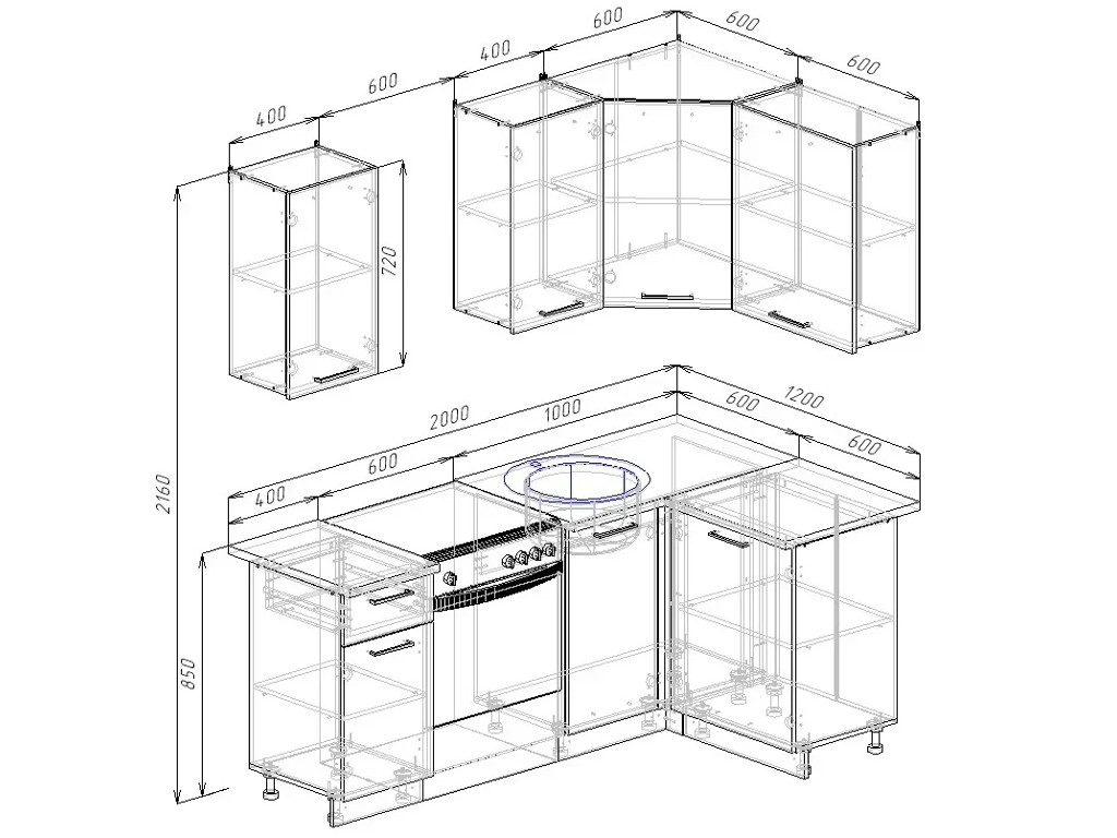 - Столешница: ЛДСП 26мм со скругленным краем (в пластике)