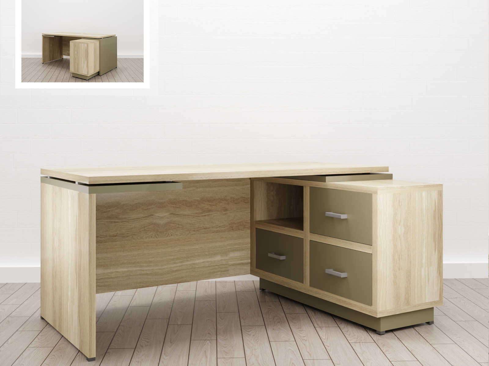 - Стол для руководителя Дизайн Правый (Е-5) Eclectic eco Дуб рокпайл-Мокко
