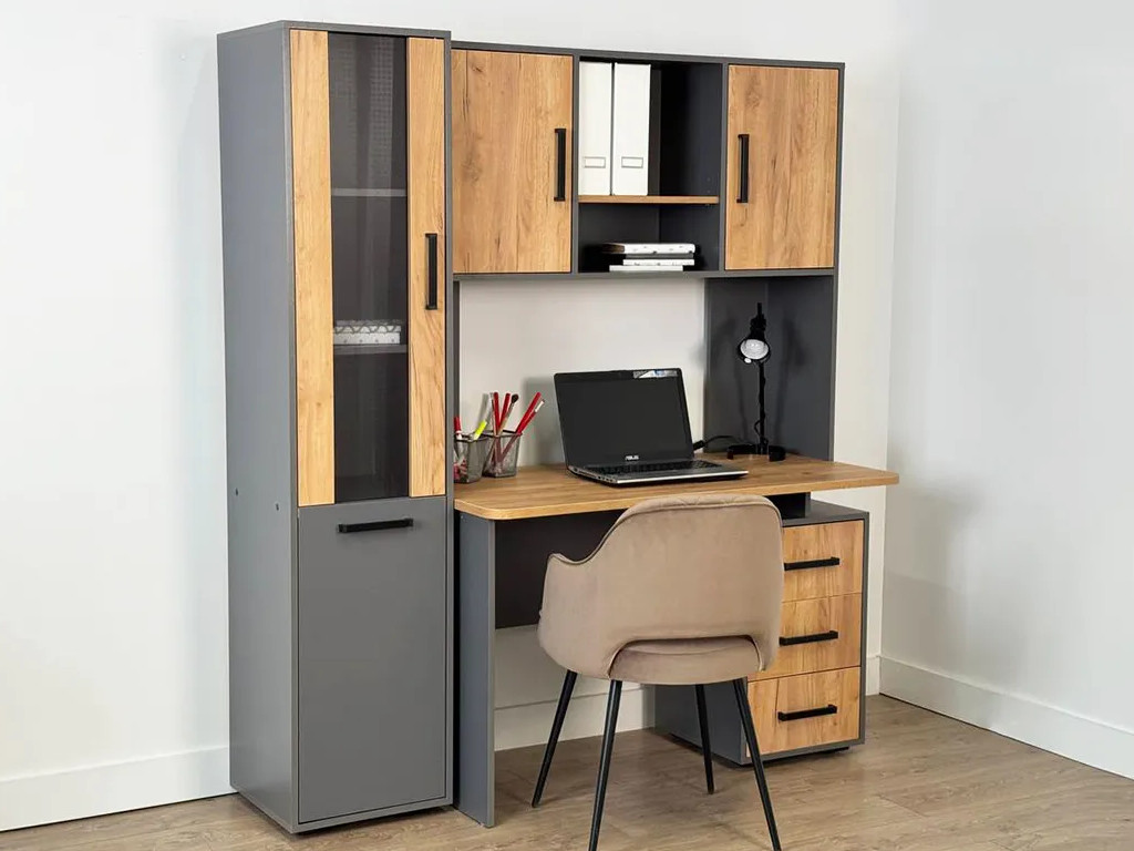- Стол компьютерный 1200 Лайт-2 графит/дуб крафт золотой