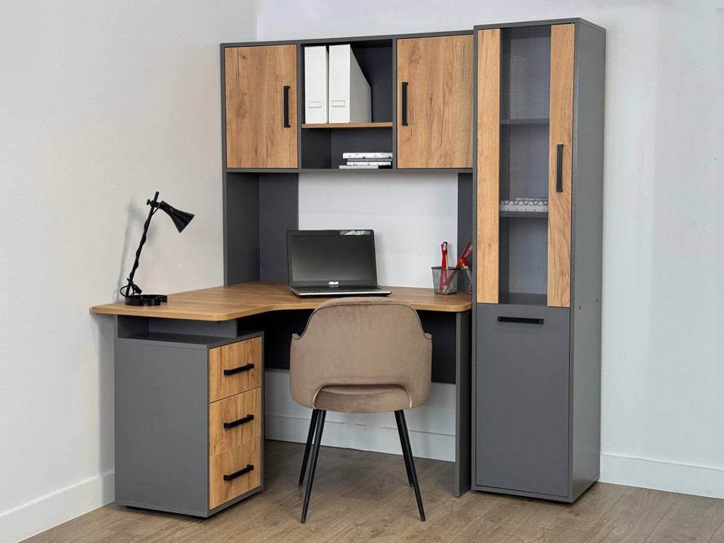 - Стол компьютерный 1200 угловой Лайт-2 графит/дуб крафт золотой