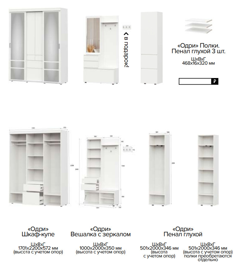 - Вешалка с зеркалом ( 61,95 кг; 0,113 м3) ( 1001х2000х350 мм)