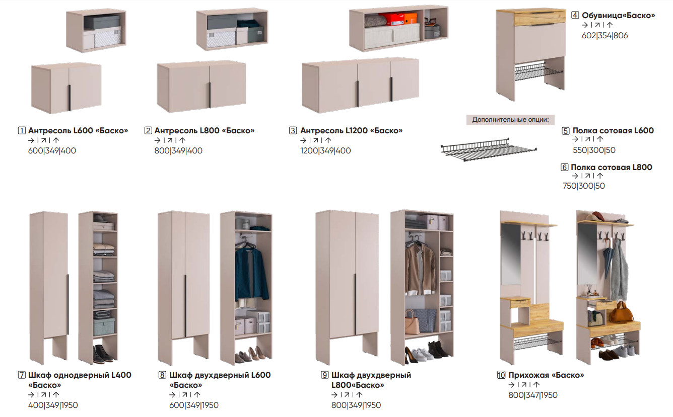 - Прихожая Баско комплект К5 с антресолями кашемир