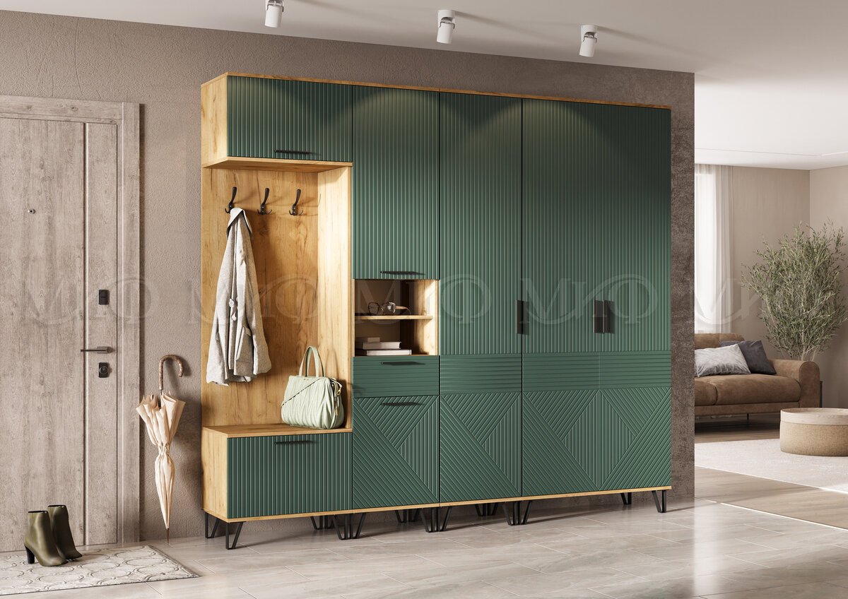 - Прихожая Флэш Браш Мени Грин, Дуб Крафт