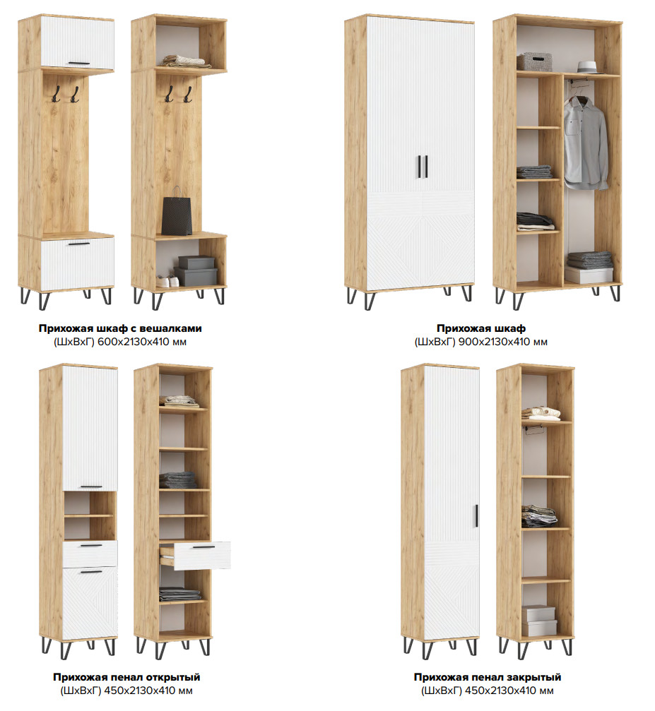 Цена за комплект: Пенал закрытый, Шкаф, Пенал открытый, Шкаф с вешалками