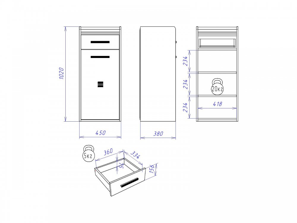 Размер Ш*Г*В: 450*384*1020 мм