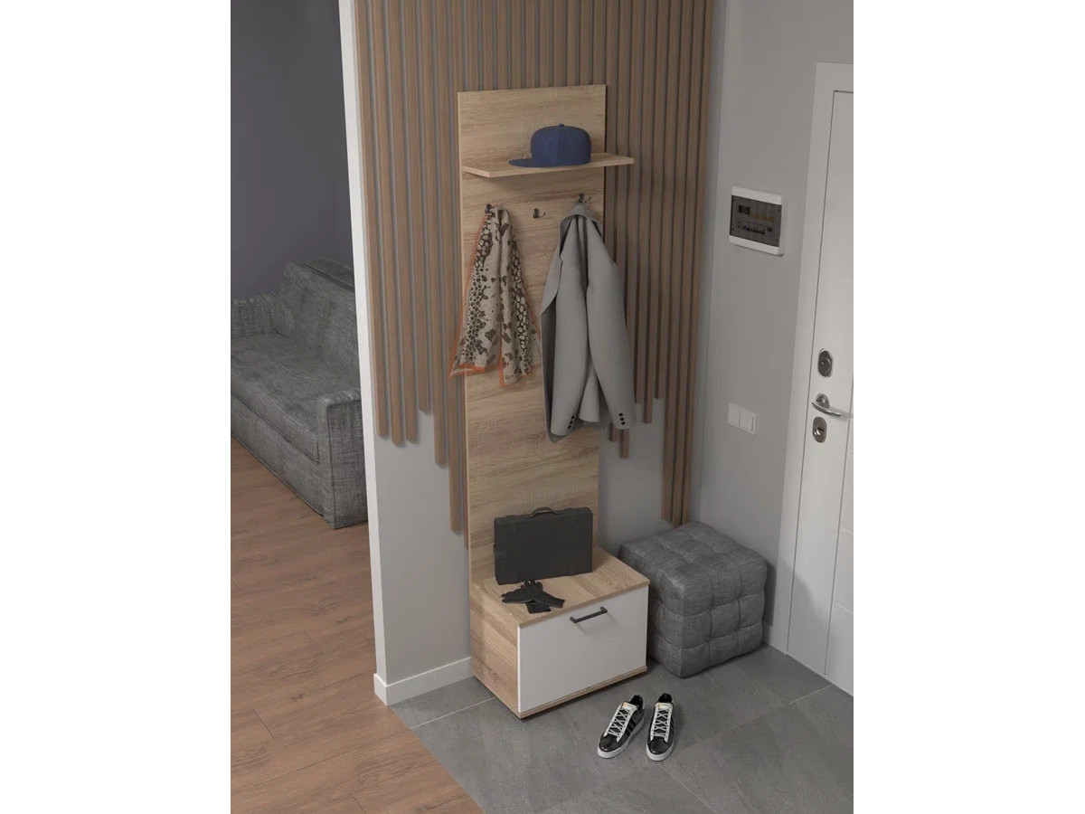 Тумба с вешалкой в прихожую арт. 181 дуб сонома/белый