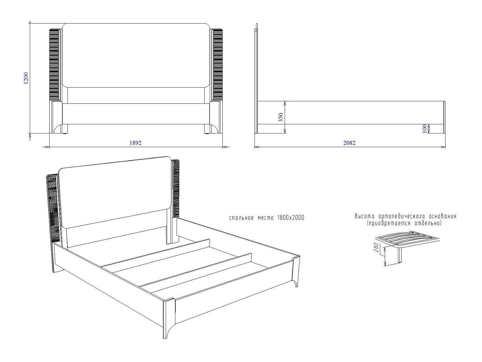 - Кровать 1800 Сиде Мокко (велюр) без основания