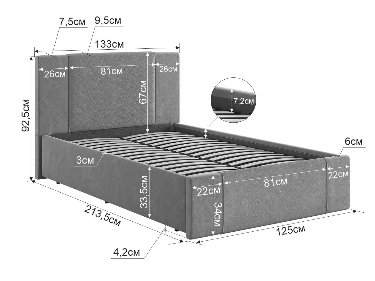 Размер: ш=1330 мм, г=2135 мм, в= 925 мм