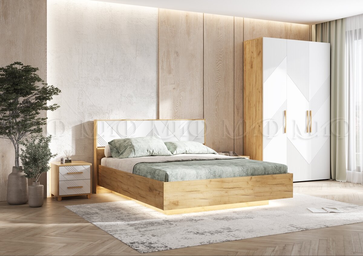- Кровать парящая 1600 Ирис (ортопед дерево) Браш Вайт/Дуб Крафт