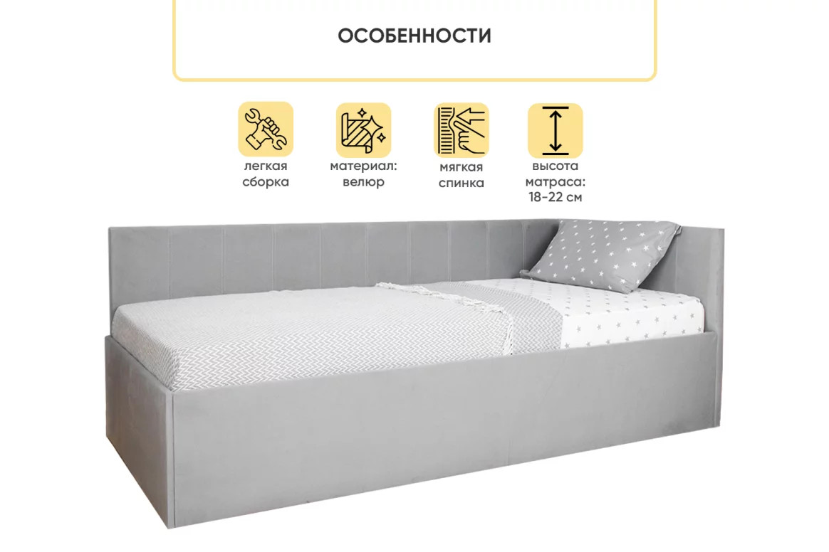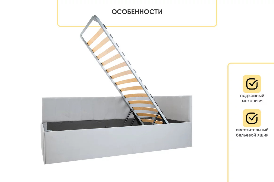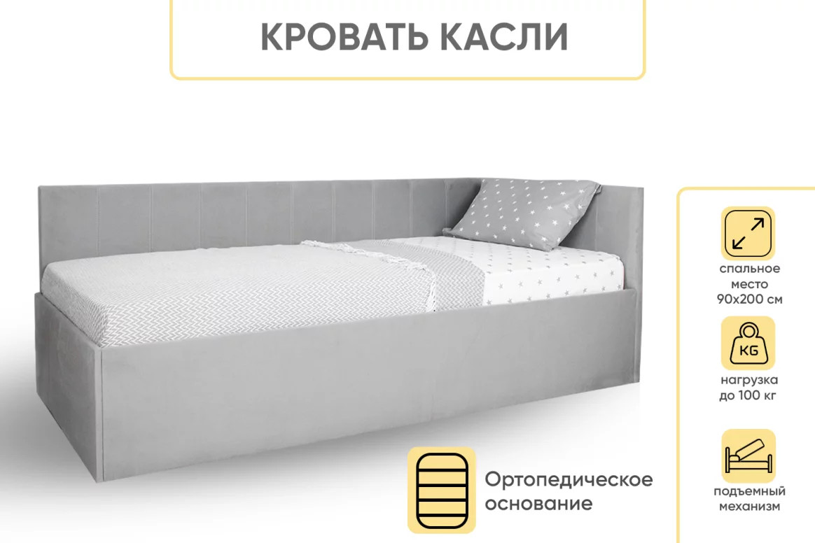 - Кровать с подъемным механизмом Касли Серый Velutto 52