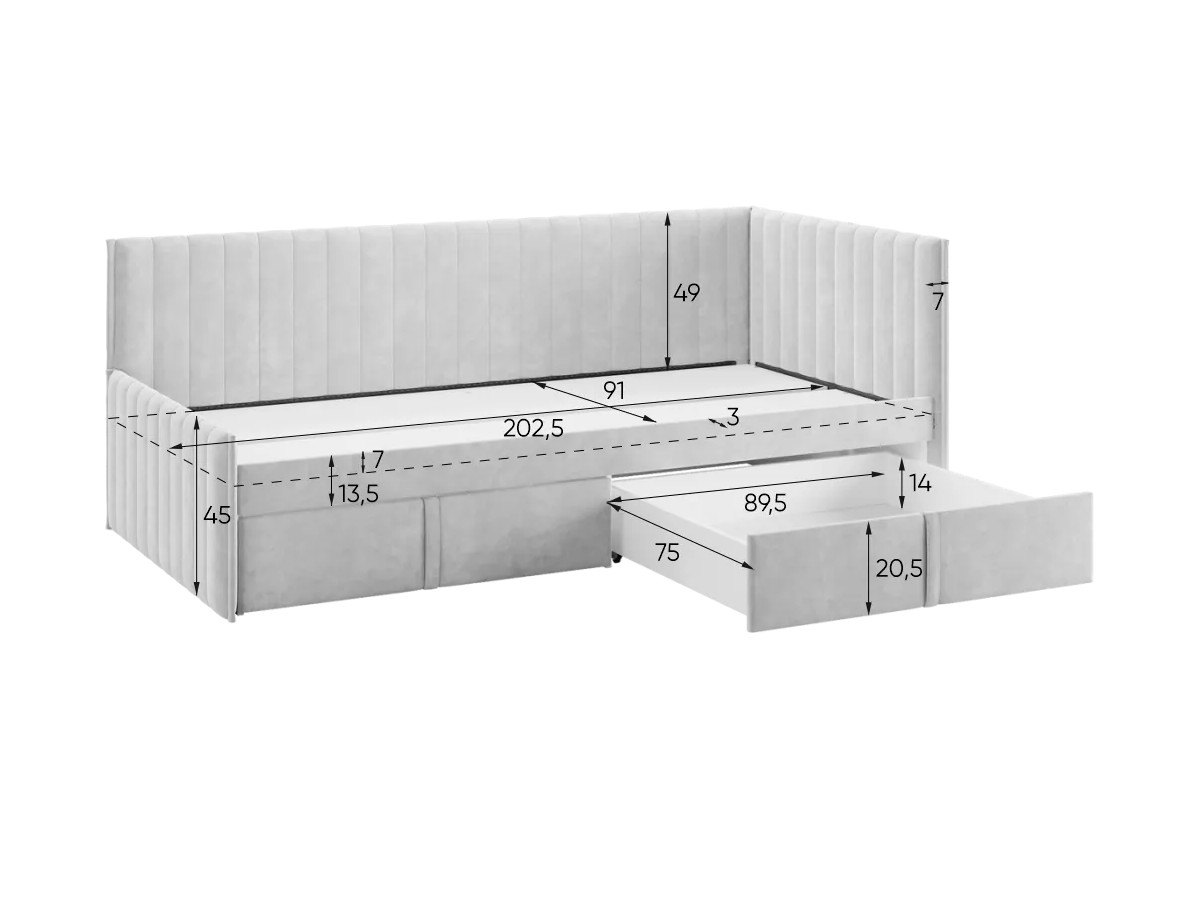 Кровать-тахта с ящиками Твикс цвет велюра латте