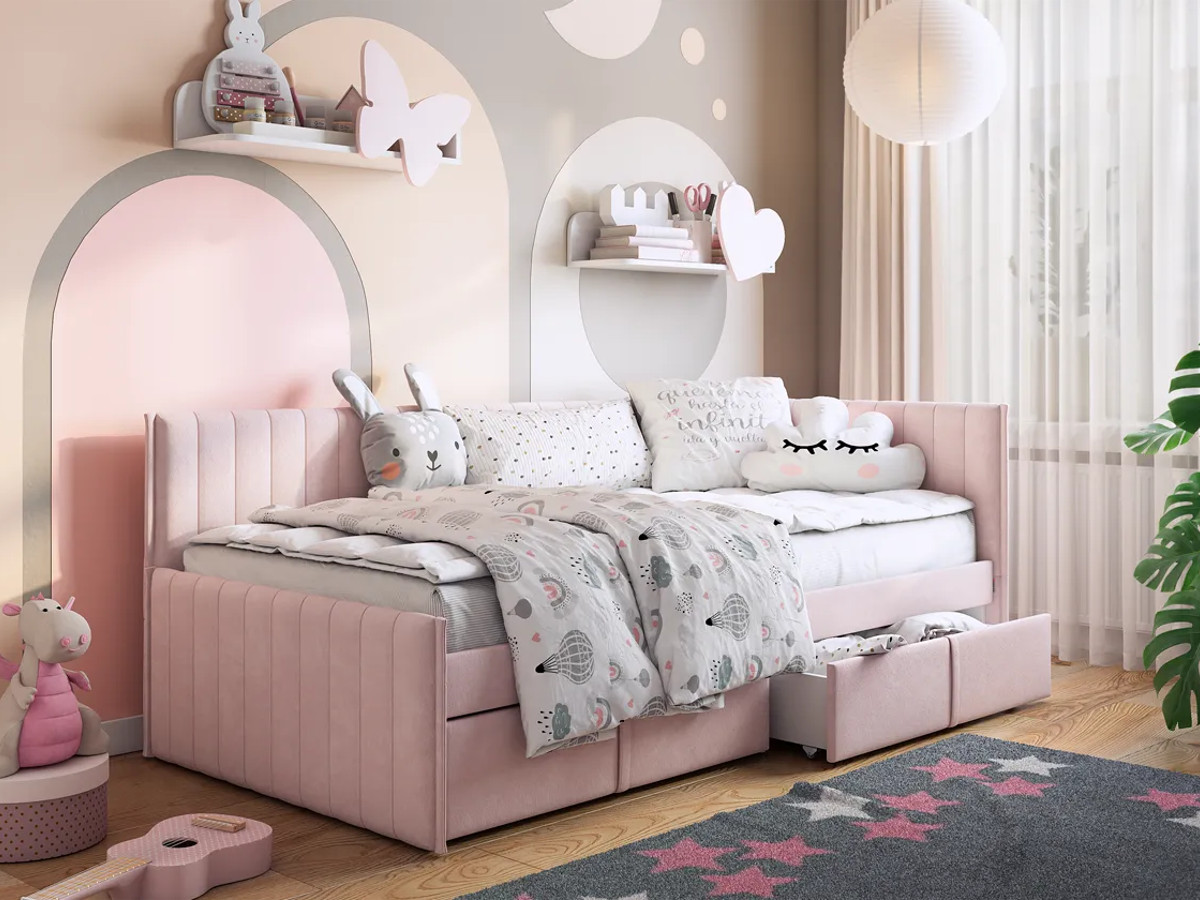 Кровать-тахта с ящиками Твикс цвет велюра нежно-розовый