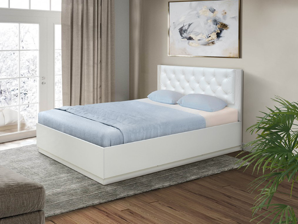- Кровать Венеция 12.2 1600 с ортопедическим основанием кожзам белый
