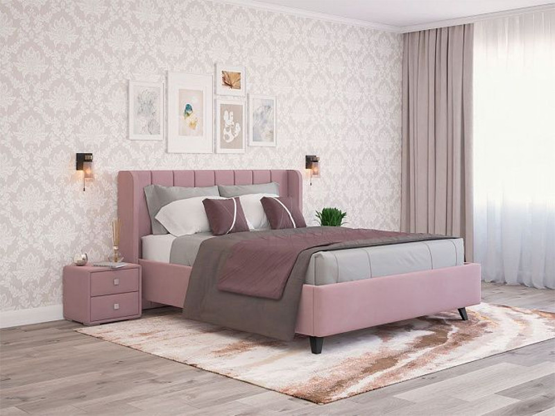 - Кровать Виола с ПМ 1800х2000 мм микровелюр розовый