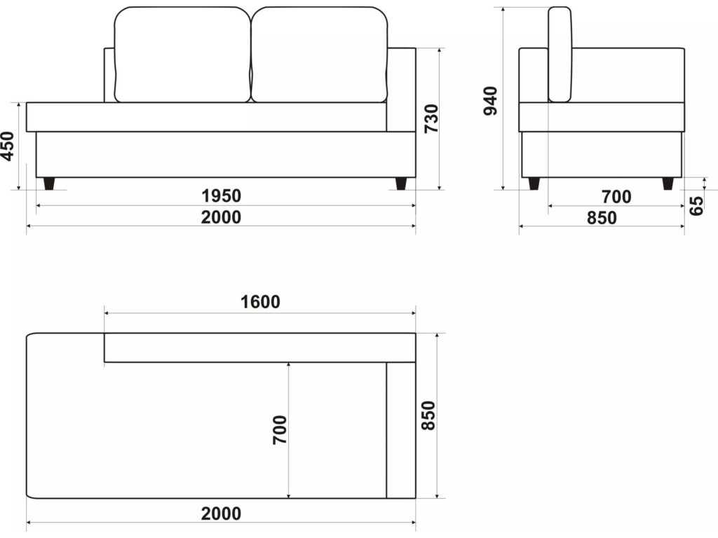 Размеры дивана (мм): 2000*850*940