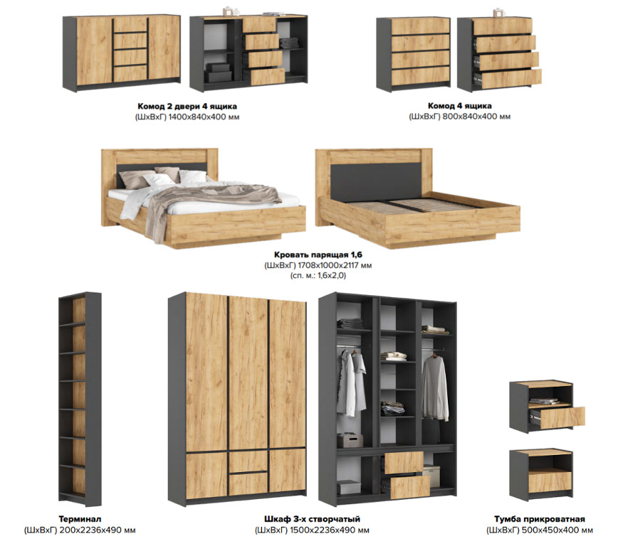 - Спальня Остин Дуб крафт, Графит