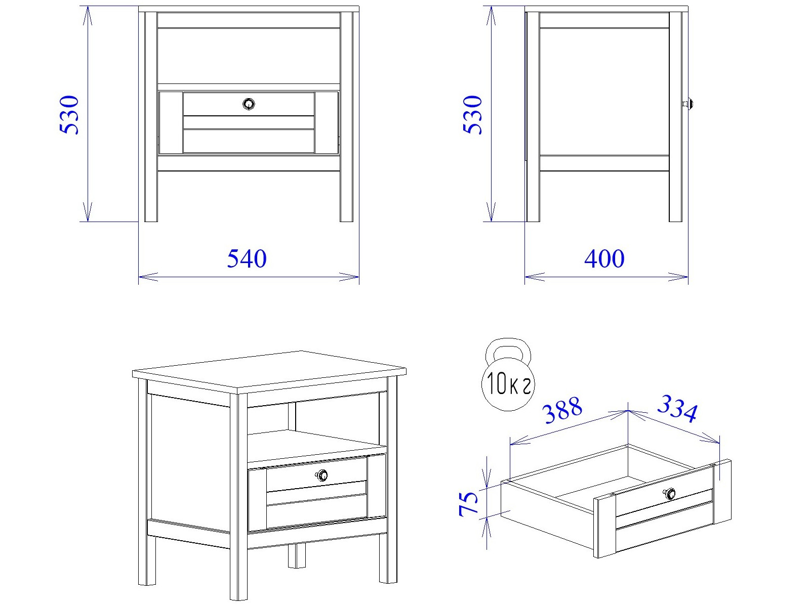 Макс.нагрузка на ящик (кг): 5