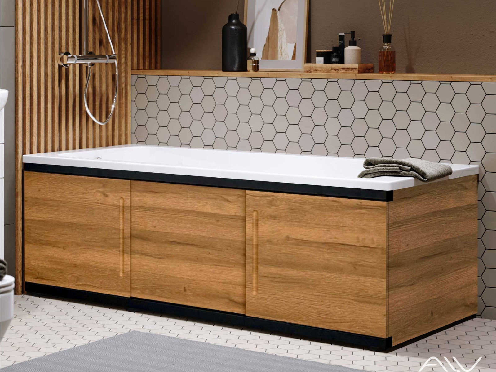 - Экран под ванну МДФ Alt Black 1700 мм дуб